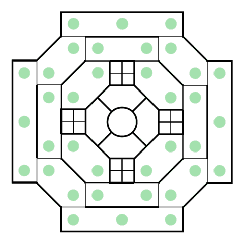 • 三個霧要分別放在三個不同的霧區的空棋位上,這三個霧區都不能跟人行走結束時處在同一區。