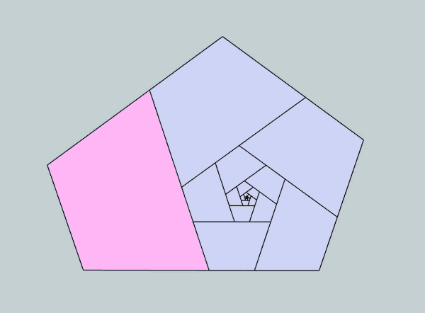 每個梯形都是一個正五邊形的一部分,沿螺旋方向按固定比例縮小。