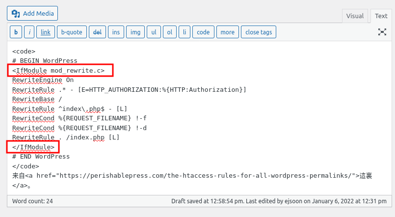 以上做法會使空格或tab縮進消失。如果希望保留縮進,則應先將代碼用regexp把其中的「<、>、&」替換為「<、>、&」,之後於源碼中粘貼。