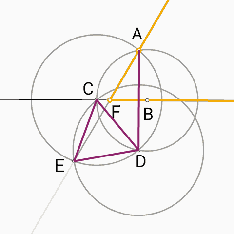 Euclidea三角形垂心,過一點作與直線相切的圓,作六十度角 2024-09-032024-08-10 by ejsoon 如圖所示作輔助線: 則三角形CDE是正三角形,∠ECD=60°,則∠EAD=30°,同時AD⊥CB,因此∠AFB=60°。 Pages: 1 2 3 4 5 6 7 8 9 10 11 12