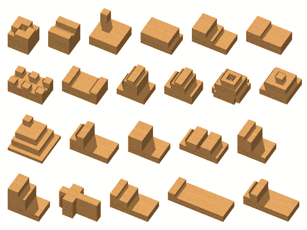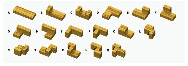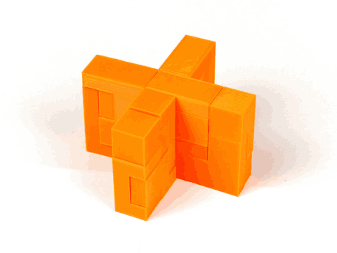 它的體積跟索瑪方塊相同,都等於二十七顆立方體。不過它能拼出索瑪方塊拼不了的圖形: